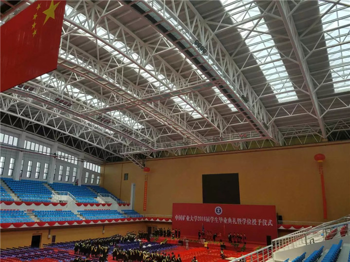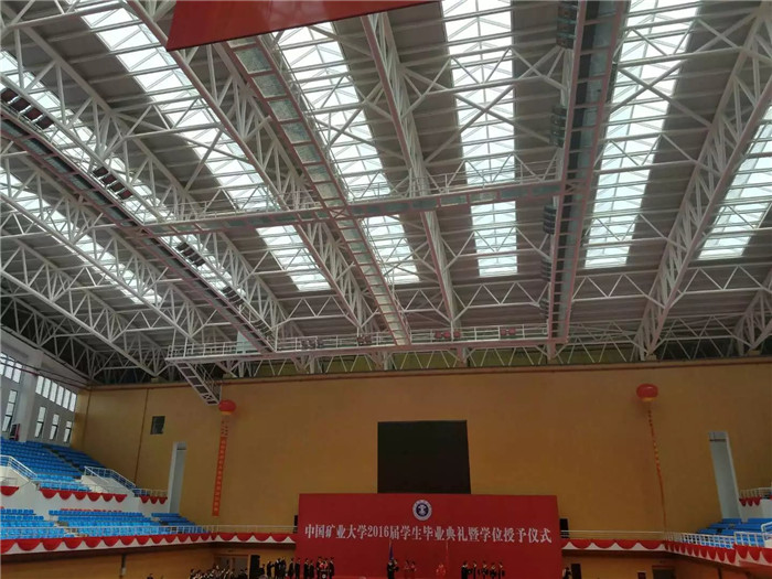 礦大訓(xùn)練館,綜合館,游泳館均采用桁架結(jié)構(gòu),總建筑面積達(dá)19000平方米,屋面采用鋁鎂錳板,墻面為玻璃及鋁單板幕墻設(shè)計(jì)。