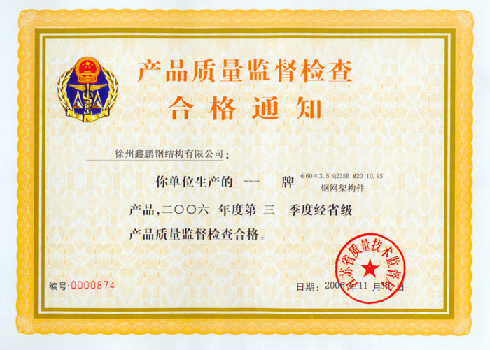 產品名稱:產品質量監(jiān)督檢查合格通知