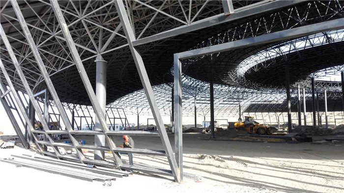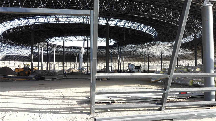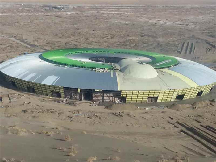 位于庫爾勒的博斯騰越野文化主題公園工程,直徑142m,建筑面積22000㎡,采用鋼結(jié)構(gòu)網(wǎng)架為框架,屋面和墻面采用鋁鎂錳板設(shè)計。