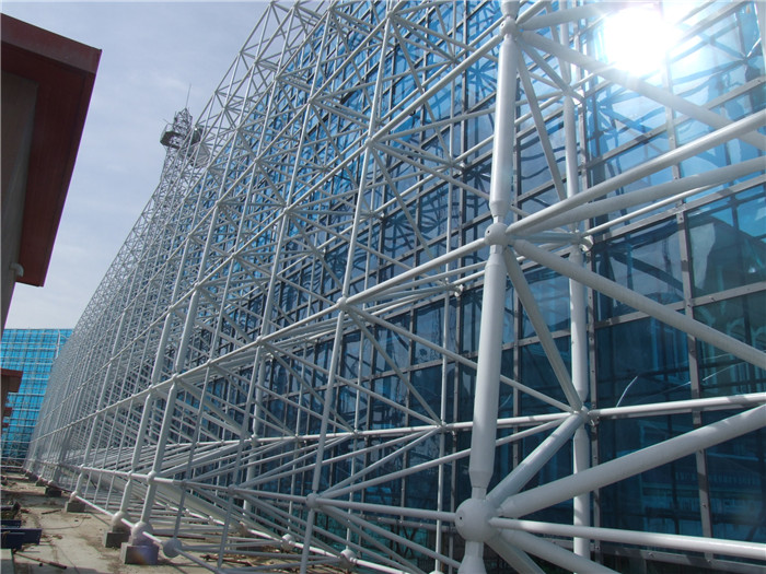 內(nèi)蒙古太陽能發(fā)電站采用螺栓球網(wǎng)架為框架,玻璃幕墻的設計。