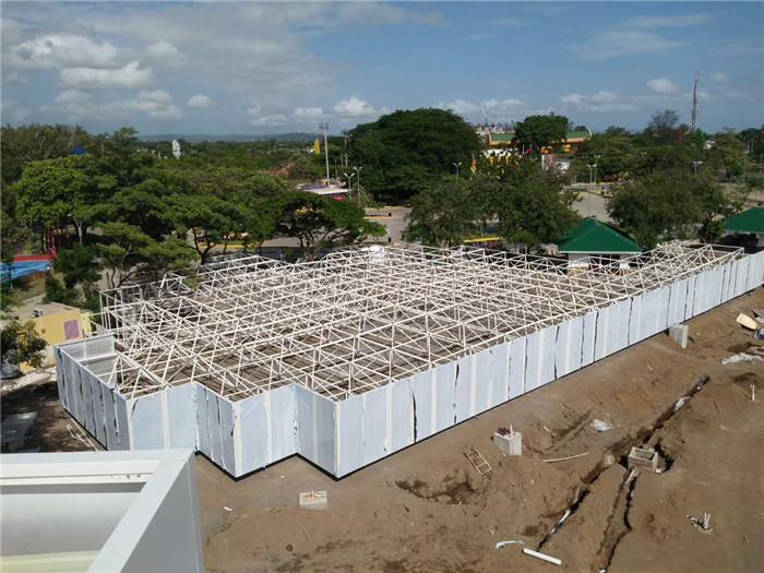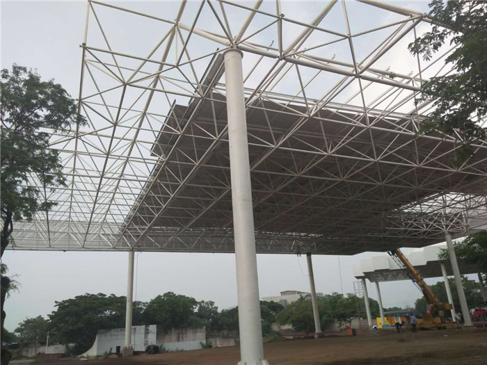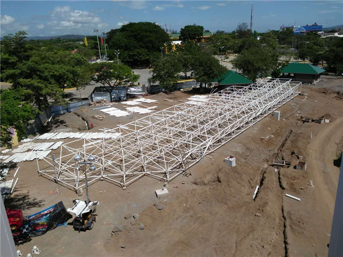 尼加拉瓜倉庫采用螺栓球網(wǎng)架設計,頂部采用0.9mm鋁鎂錳板,底部采用0.5mm 鋼板設計,建筑面積2890平方米,網(wǎng)架具有美觀易安裝等諸多優(yōu)點。