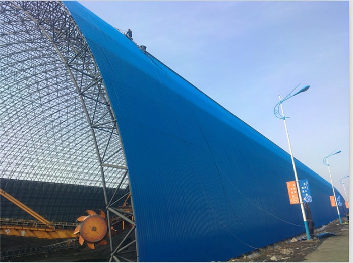 印尼煤棚采用螺栓球網(wǎng)架設計,屋面采用彩鋼板覆蓋,用于發(fā)電廠煤棚,建筑面積18314平方米。