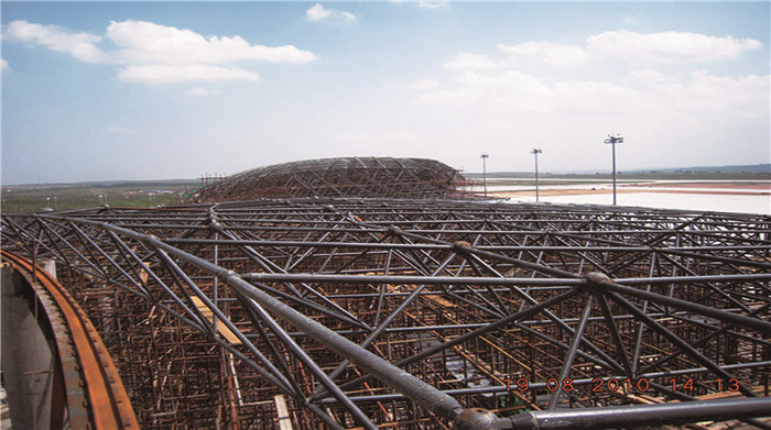 鄂爾多斯機場采用焊接球網(wǎng)架,鋁板屋面,玻璃幕墻的設(shè)計,加工,安裝,總面積達47200平方米。